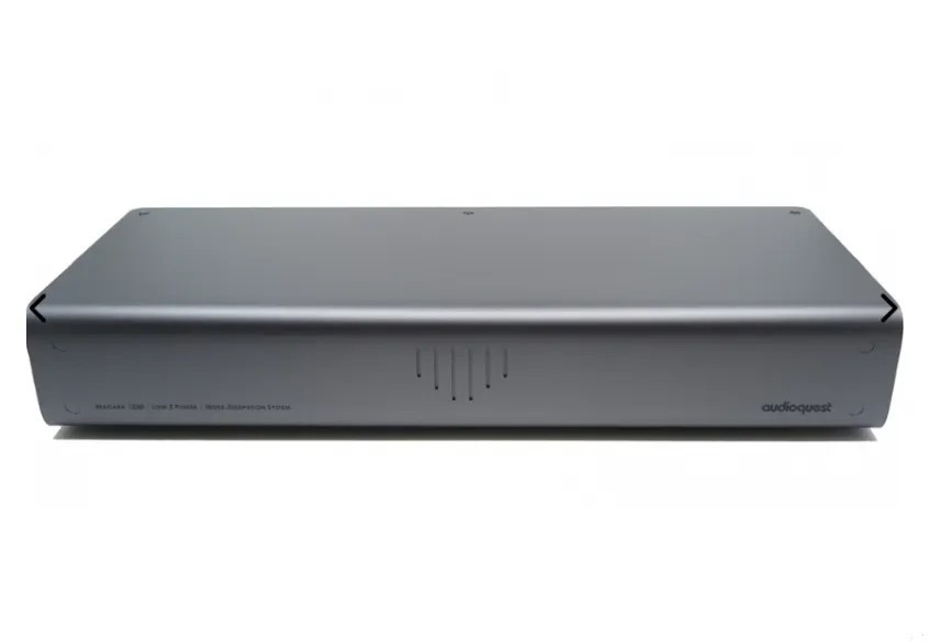 Audioquest Niagara 1200 AudioQuest представляє Audioquest Niagara 1200 — систему кондиціонування електроживлення з технологією розсіювання шумів і низьким імпедансом (Low-Z Power Noise-Dissipation System), яка реалізує нові принципи фільтрації перешкод в електричних мережах. Найвідоміша різниця між попередньою моделлю Niagara 1000 і новою Audioquest Niagara 1200 (за винятком чудової текстурованої обробки Niagara 1200), це форма корпусу,