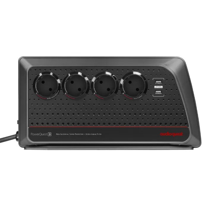 Audioquest PowerQuest 3 Мережевий фільтр-розподільник AudioQuest PowerQuest 3 зроблений у корпусі оригінального дизайну. Це робить цей пристрій дуже привабливим зовні, але водночас дуже вдалий вертикальний форм-фактор забезпечує й можливість прихованого встановлення AudioQuest PowerQuest 3. Мережевий фільтр має вісім електричних розеток, що дає змогу використовувати AudioQuest PowerQuest 3 для під'єднання компонентів