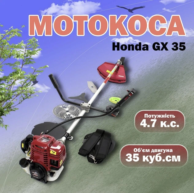 Мотокоса Honda GX 35 червона професійна та побутова для трави й кущів включно з сухостоєм та молодими пагонами дерев