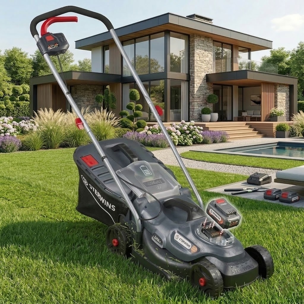 Акумулятор в комплекті: Немає; Бренд: Sterwins; Час зарядки батареї, хв: 120; Гарантія: 36 місяців; Індикатор наповнення травозбірника: Ні; Кількість регулювань висоти косіння: 4; Комплектація: Акумулятор в комплект не входить; Країна реєстрації бренду: Франція; Країна виробництва: Китай; Матеріал корпусу: Пластик; Матеріал травозбірника: Пластик+тканина; Ширина захвату, см: 36; Травозбірник, л: 35; Тип акумулятора: Li-Ion; Тип пересування: Несамохідна; Вага, кг: 13; Вид: Газонокосарка; Викид трави: Задній