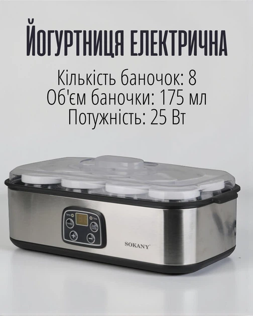 Йогуртниця електрична Sokany на 8 баночок по 175 (мл) з таймером 25Вт