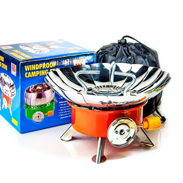 Газовий пальник 2 8 кВт з вітрозахистом п'єзопідпалом червоний пластиковий корпус для туризму модель K-203