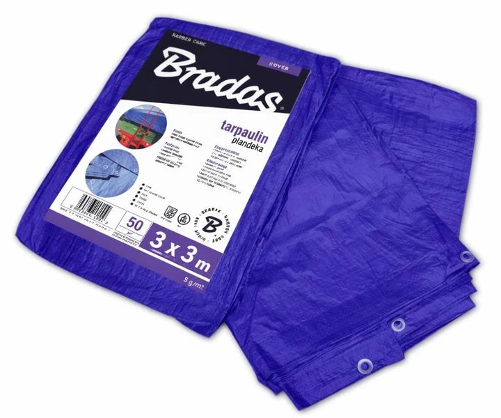 Тент (тарпаулин) Bradas STANDARD, плотность 50 г/м, 33 м, защитный, с люверсами, синий, PLL3/3