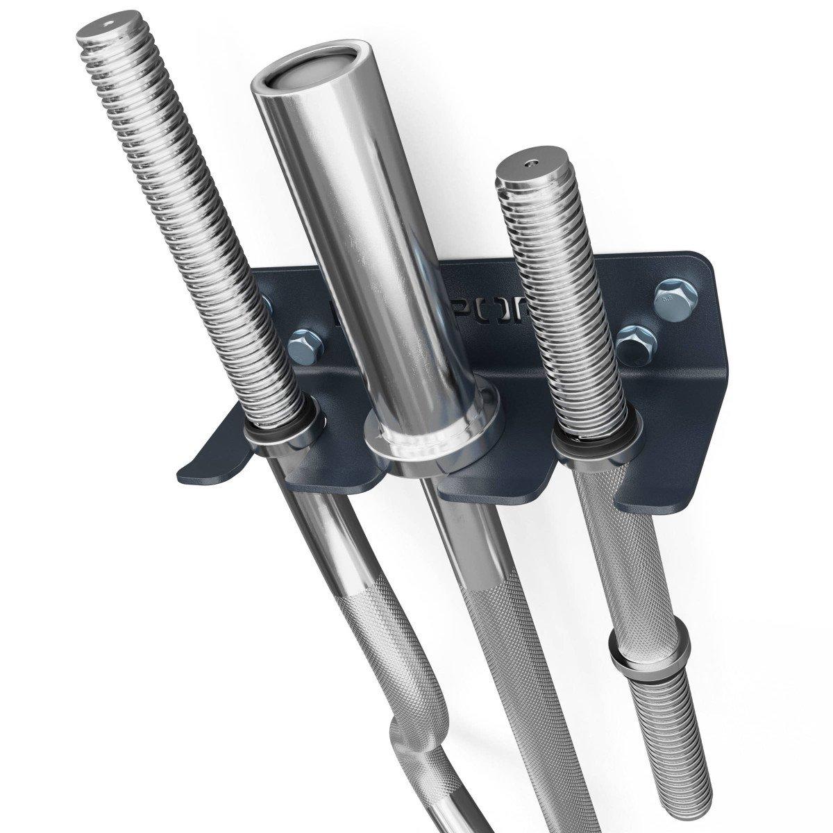 настінний тримач для грифів К-sport Спортивний інвентар необов'язково займає половину кімнати - у нашій пропозиції є багато цікавих рішень для його зберігання. Ось одна з них. Він може вмістити до трьох грифів одночасно, що робить його гігантом, коли справа доходить до продуктивності.