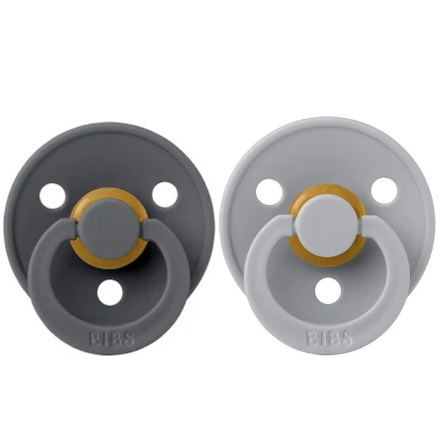 Соска BIBS 6-18 мес Colour Latex Round (кругла) – Iron / Cloud, 2 шт