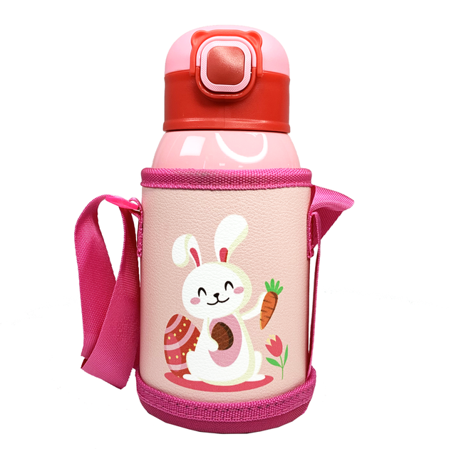 Термос-поїлка дитяча Звірята з ручками 350 мл Рожевий (MMS-MT-3451)