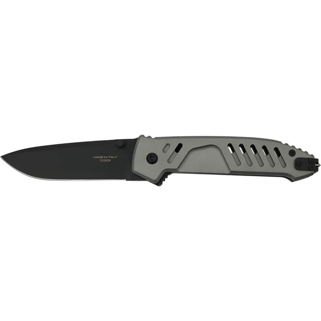 Країна походження бренду: Італія; кріплення для ремінця; відкриття однією рукою; Додатково: блокування леза; Вага (г): 142; Довжина (мм): 213; Матеріал рукояті: алюміній; Довжина леза (мм): 87; Матеріал леза: сталь; Тип основного леза: гладке; Профіль клинка: tanto; Замок: liner lock; Конструкція: складаний; Тип: Тип: EDC (повсякденний)