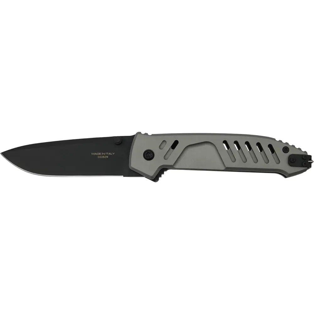 Країна походження бренду: Італія; склобій; стропоріз; шило-швайка; підпальцева виїмка; відкриття однією рукою; Додатково: блокування леза; Вага (г): 225; Довжина (мм): 270; Матеріал рукояті: алюміній; Довжина леза (мм): 110; Матеріал леза: сталь; Тип основного леза: гладке; Профіль клинка: drop-point; Замок: liner lock; Конструкція: складаний; Кількість функцій (шт.): 3; Тип: Тип: EDC (повсякденний)