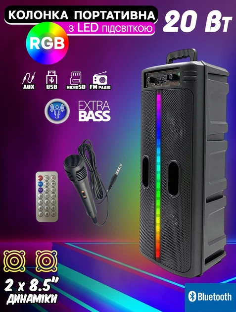 Портативна колонка з караоке мікрофоном Usams 10W RGB підсвічування Bluetooth, USB, microSD, AUX, Type-C Блакитний