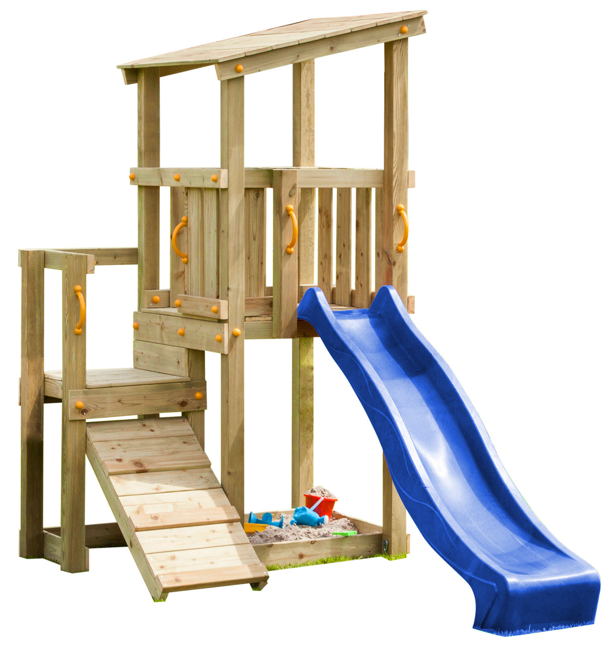 Дитячий майданчик Cascade з 2 гірками На цьому дитячому ігровому майданчику-будиночку є все, що б можна було сміливо грати дітям! Дитячий ігровий будиночок із гіркою Cascade з 2 гірками пропонує чудове співвідношення ціни та якості. Вона має дерев'яну конструкцію і може бути легко розширена за допомогою будь-яких інших модулів за вашим вибором представлених у нашому магазині.