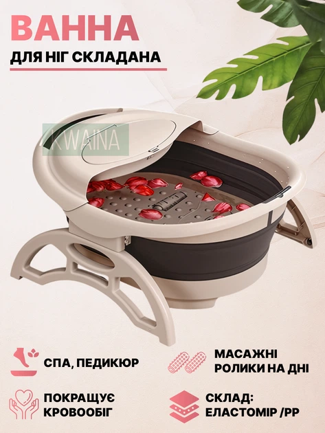Ванночка для ніг з гідромасажем для розслаблення, педикюру, 3 варіанти масажу, акупунктурні ролики, складана, Бежева
