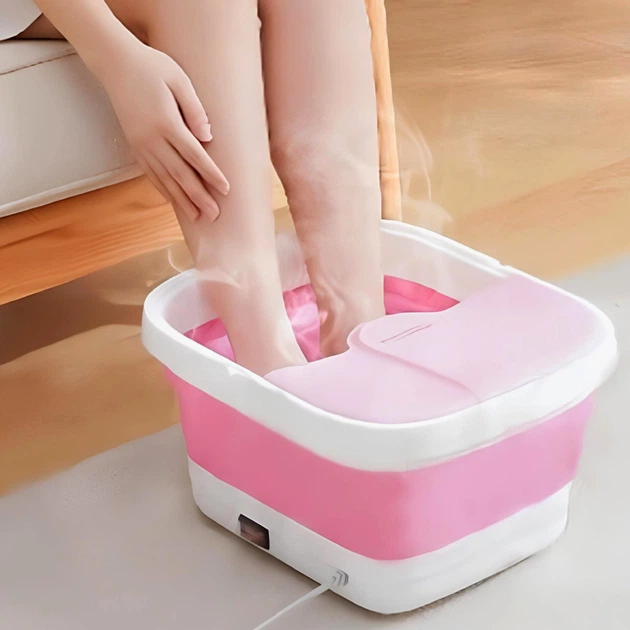 Гідромасажна ванна для ніг складана силіконова з підігрівом води та ефектом джакузі, рожева