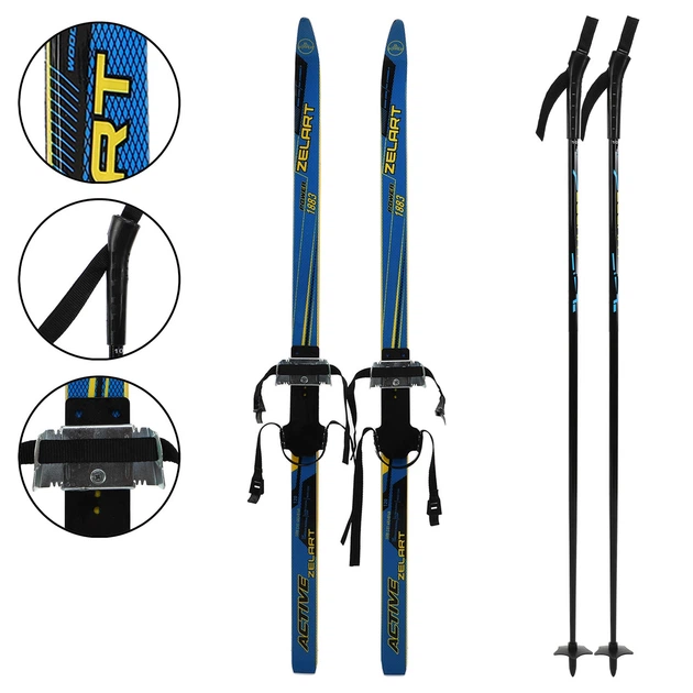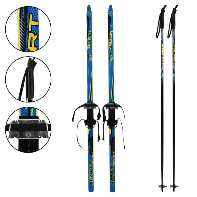 Лижі бігові підліткові в комплекті з палицями Zelart 0881-150B Blue-Yellow