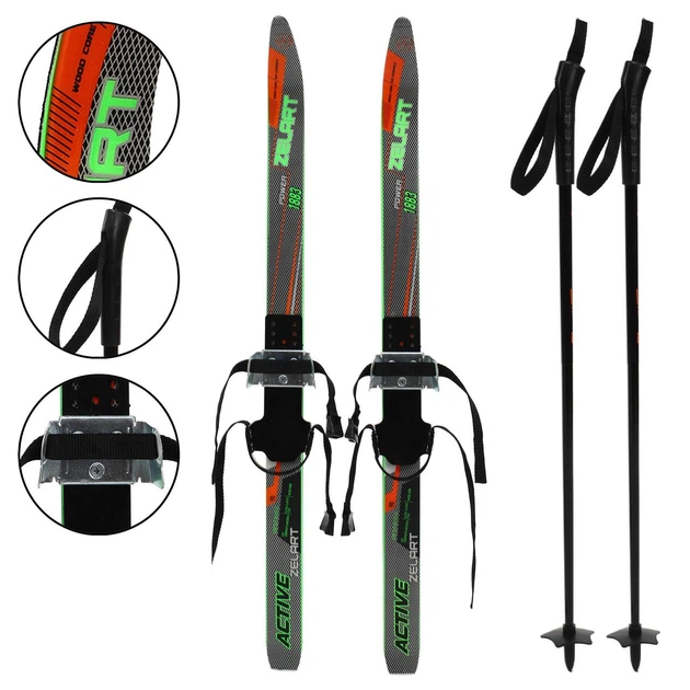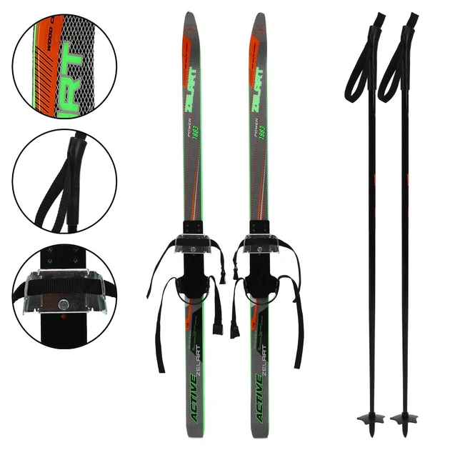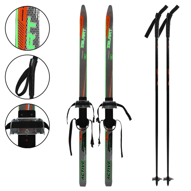 Лижі бігові дитячі в комплекті з палицями Zelart 0881-110B Grey-Red-Neon Green