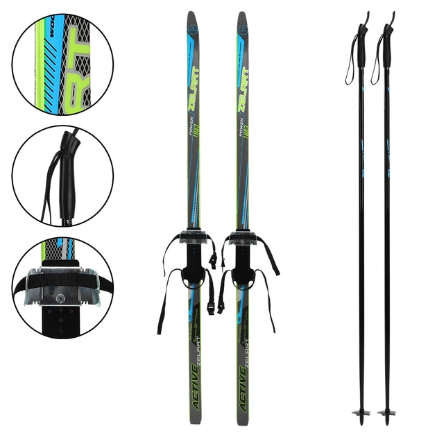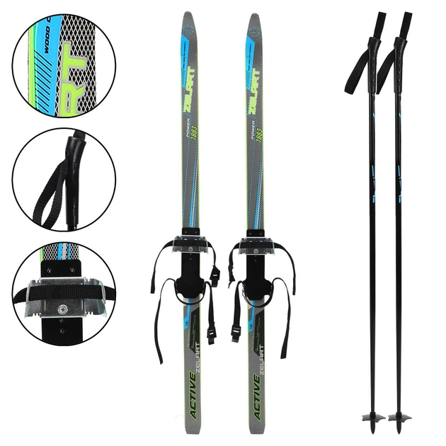 Лижі бігові підліткові в комплекті з палицями Zelart 0881-150B Grey-Blue-Neon Green