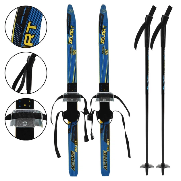 Лижі бігові дитячі в комплекті з палицями Zelart 0881-120B Blue-Yellow
