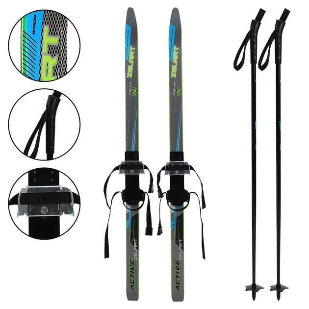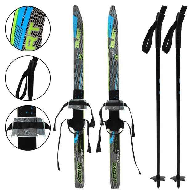 Лижі бігові дитячі в комплекті з палицями Zelart 0881-90B Grey-Blue-Neon Green