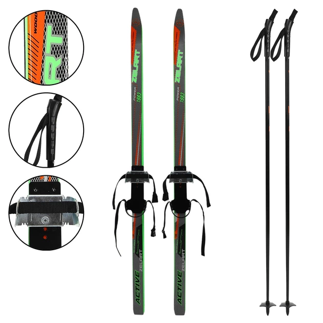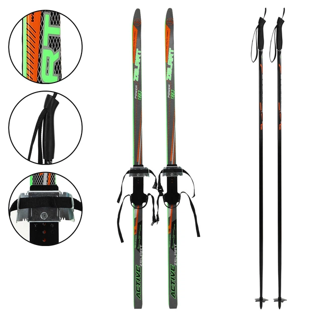 Лижі бігові підліткові в комплекті з палицями Zelart 0881-150B Grey-Red-Neon Green