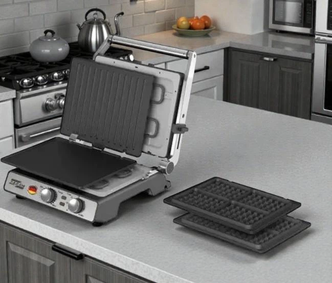 Багатофункціональний прижимний гриль - вафельниця Zepline, 3500Вт, зі швидким нагріванням та антипригарним покриттям, Сірий