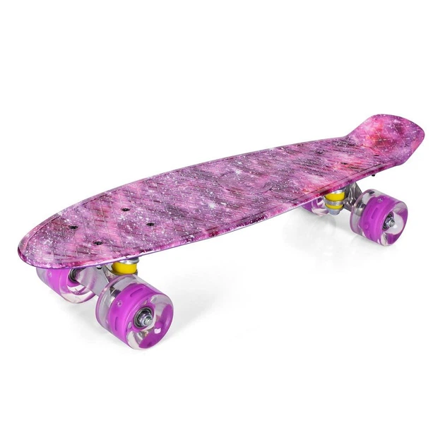 Світяться колеса / дека; Клас підшипників: ABEC 7; Діаметр коліс (мм): 60; Жорсткість коліс: 75A; Матеріал коліс: поліуретан; Матеріал деки: пластик; Розмір деки ДхШхТ (мм): 558x152; Тип: міні-круїзер