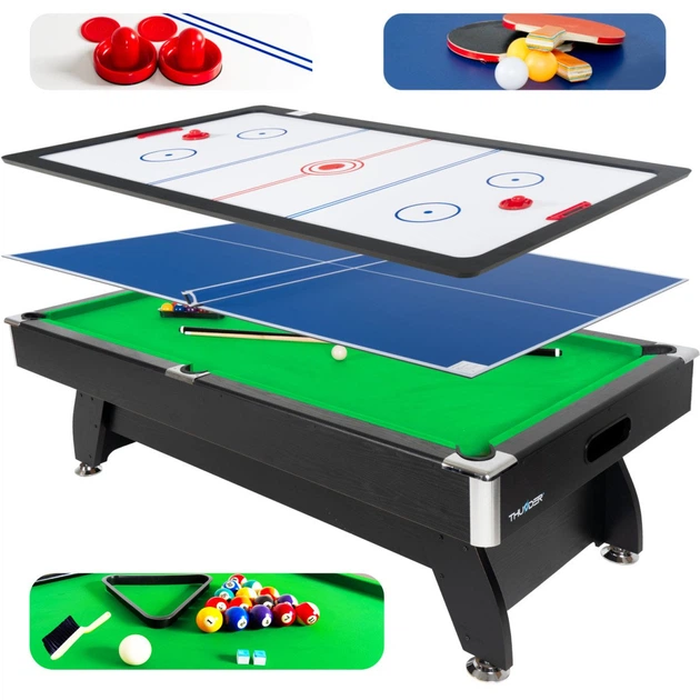 Більярдний стіл THUNDER з накриттям для аерохокею/пінг-понгу 9FT BOLD-BLACK