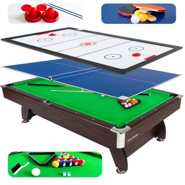 Більярдний стіл 3в1 THUNDER 8FT BOLD-BROWN з покриттям для аерохокею/пінг-понгу, 244 х 132 х 81 см