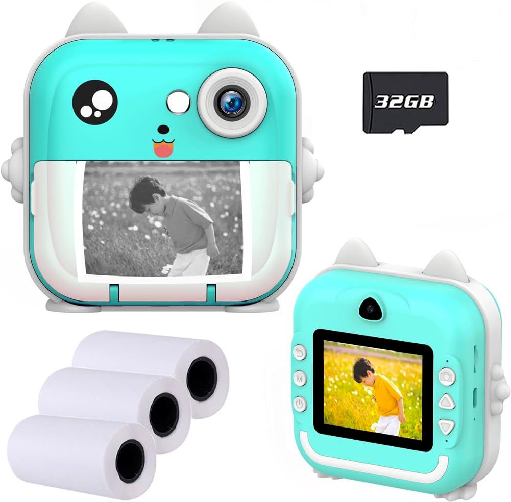 Дитяча камера миттєвого друку з функцією відеозйомки print camera. Колір: Бірюзовий Дитячий фотоапарат, також відомий як print camera або фотоапарат принтер, дає змогу роздрукувати світлину за лічені секунди завдяки вдосконаленій технології термодруку. Не потрібне ні чорнило, ні тонера. Просто виберіть режим фотознімання та натисніть кнопку "ОК" — чорно-біле фото буде миттєво