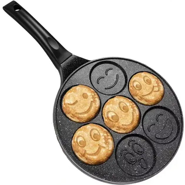 Комплектація: ; Функції та можливості: індукційне дно; Антипригарне покриття; Матеріал ручок: бакеліт; Матеріал сковороди: алюміній; Розмір: Макс. розмір (см): 26; Декор для дітей; Тип: для оладок