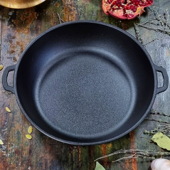 Тип сковороди: Жаровня / Діаметр, см: 34 / Матеріал корпусу: чугун / Кришка в комплекті: нет / Матеріал ручки: Чугун / Додатково: С двумя ручками / Тип варильної поверхні: Электрическая, Стеклокерамическая, Индукционная, Духовка, Галогеновая, Газовая