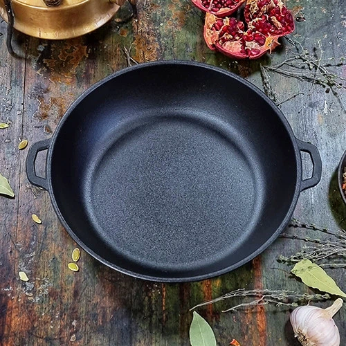 Тип сковороди: Жаровня / Діаметр, см: 40 / Матеріал корпусу: чугун / Кришка в комплекті: нет / Матеріал ручки: Чугун / Додатково: С двумя ручками / Тип варильної поверхні: Электрическая, Индукционная, Духовка, Газовая