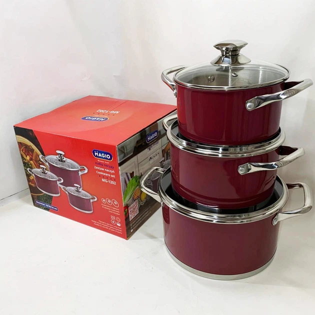 Набір каструль з нержавіючої сталі з кришками, 6 предметів, червоний