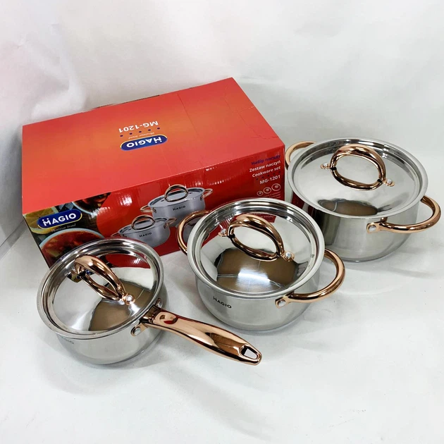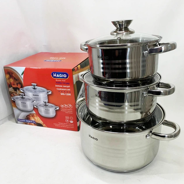 Набір кухонного посуду Magio VG-1201 з антіпригарним покриттям нержавіюча сталь 1,9 л 2,6 л 3,6 л