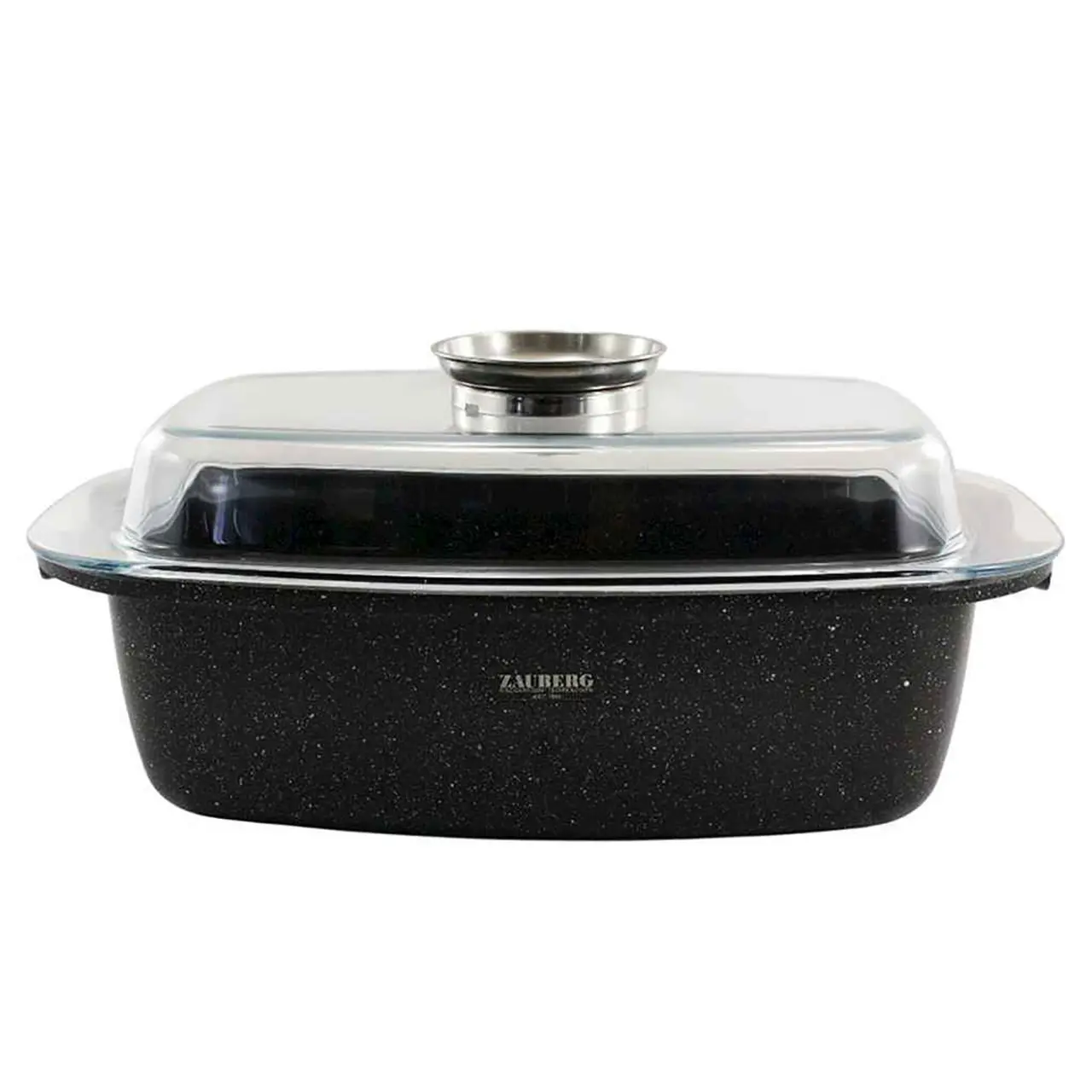 Гусятниця індукційна 5.5 л з кришкою з жароміцного скла та аромаручкою з мармуровим покриттям, Zauberg Чорний 87598