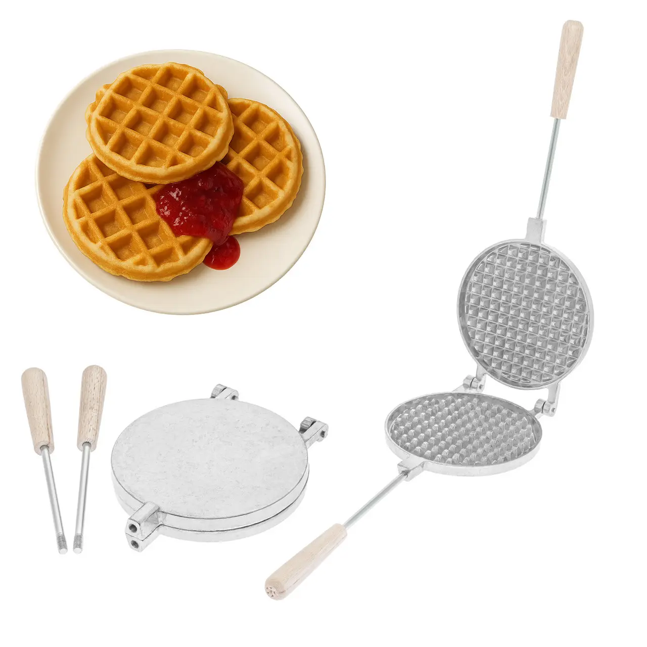 Форма алюмінієва кругла для випікання товстих бельгійських віденських вафель (вафельниця) зі знімними ручками, RS Сірий 8709