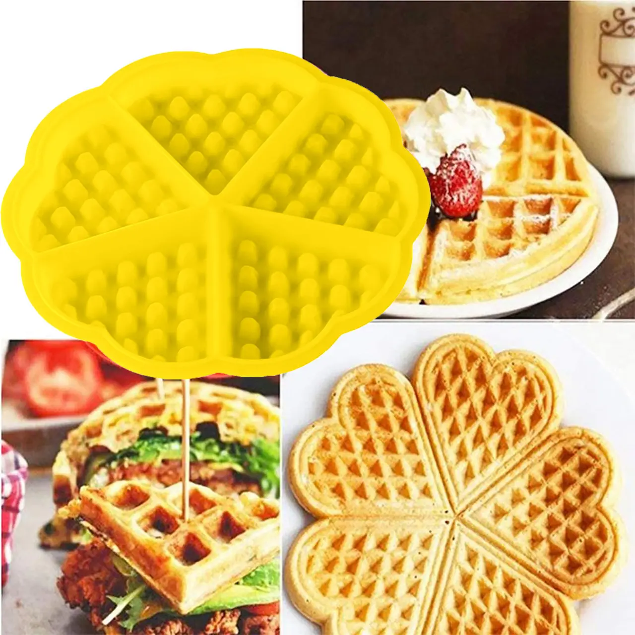 Силіконова форма для випічки Вафель у формі серця 18 см Жовта
