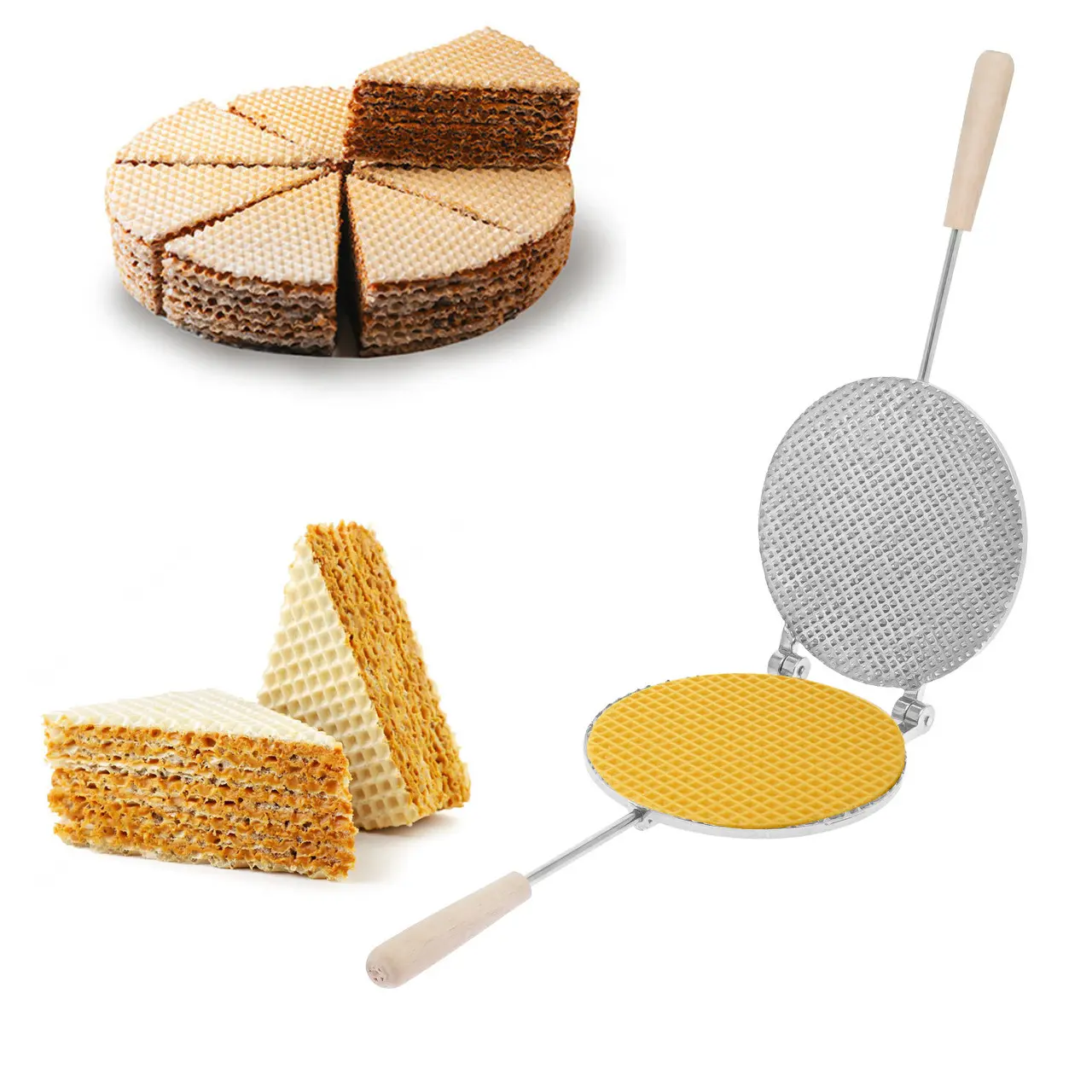 Вафельниця пірамідка форма для випічки вафельних коржів для тортових вафель на плиті Ø 18 см зі знімними ручками, RS 87765