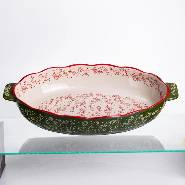 Форма для запікання Vintage овальна з ручками порцелянова зелена для лазаньї запіканок пирогів кексів (596184)