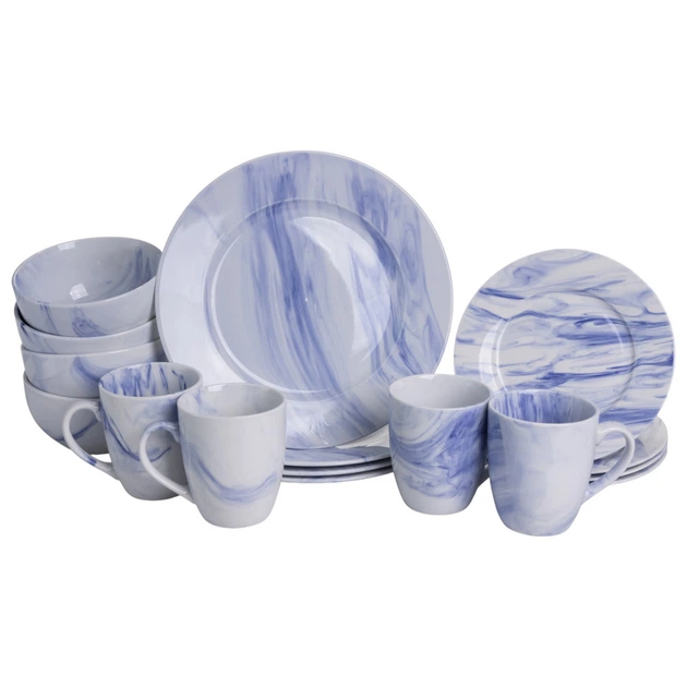 Столовий набір посуду тарілок і чашок 16 предметів на 4 особи Marble Clara порцеляновий Синій MD-16-3B