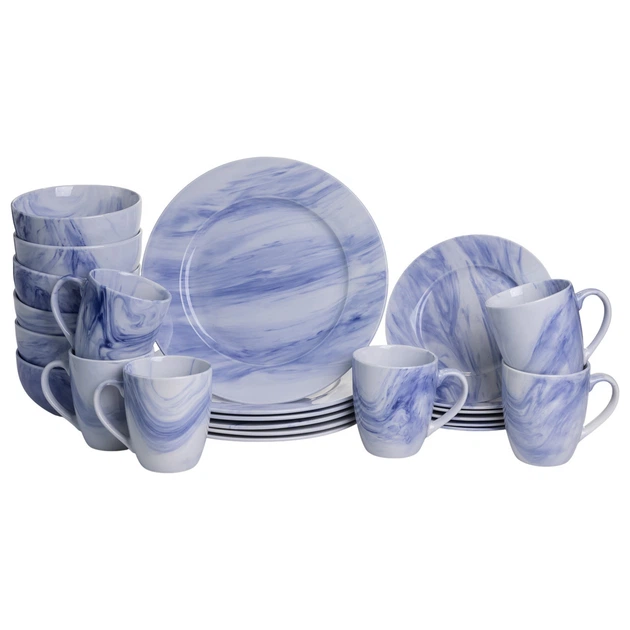 Столовий набір посуду 24 предмети на 6 осіб Marble Clara порцеляновий Синій MD-24-3B