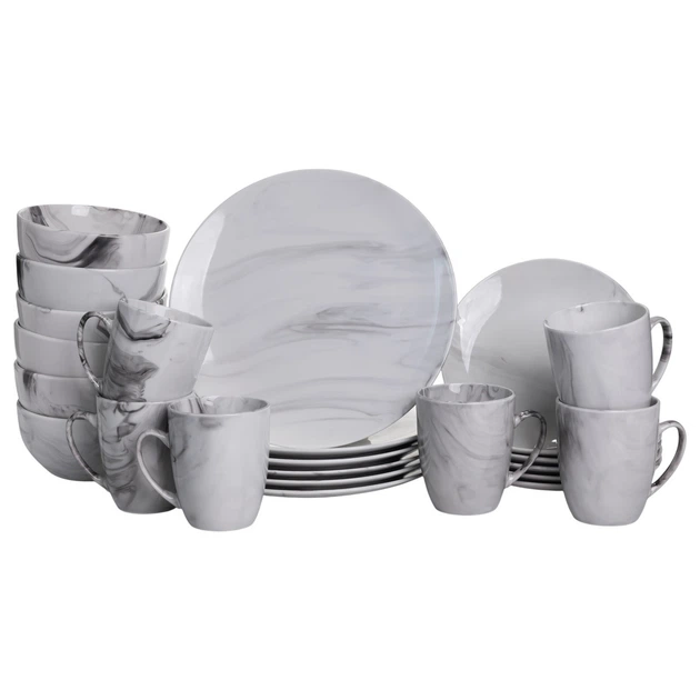 Столовий набір посуду тарілок і чашок 24 предметів на 6 персон Marmor порцеляновий MD-24-2G