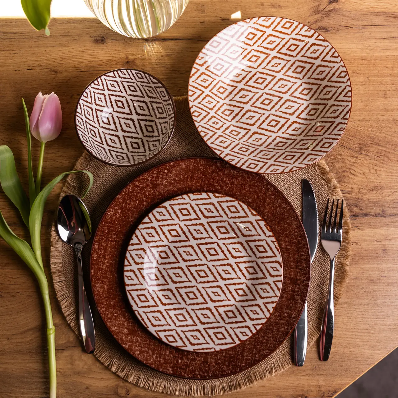 Столовий сервіз золотий на 6 персон 24 предмети набір порцелянових тарілок для сервірування столу сервіз тарілок Коричневий