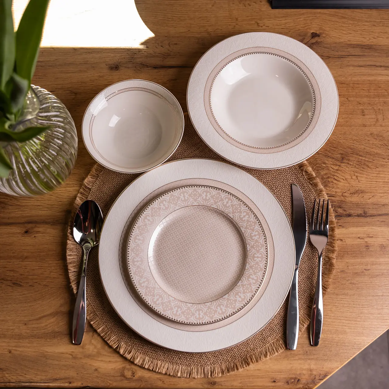 Столовий сервіз золотий на 6 персон 24 предмети набір порцелянових тарілок для сервірування столу сервіз тарілок Бежевий Yiw