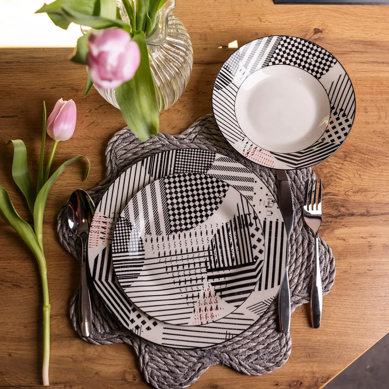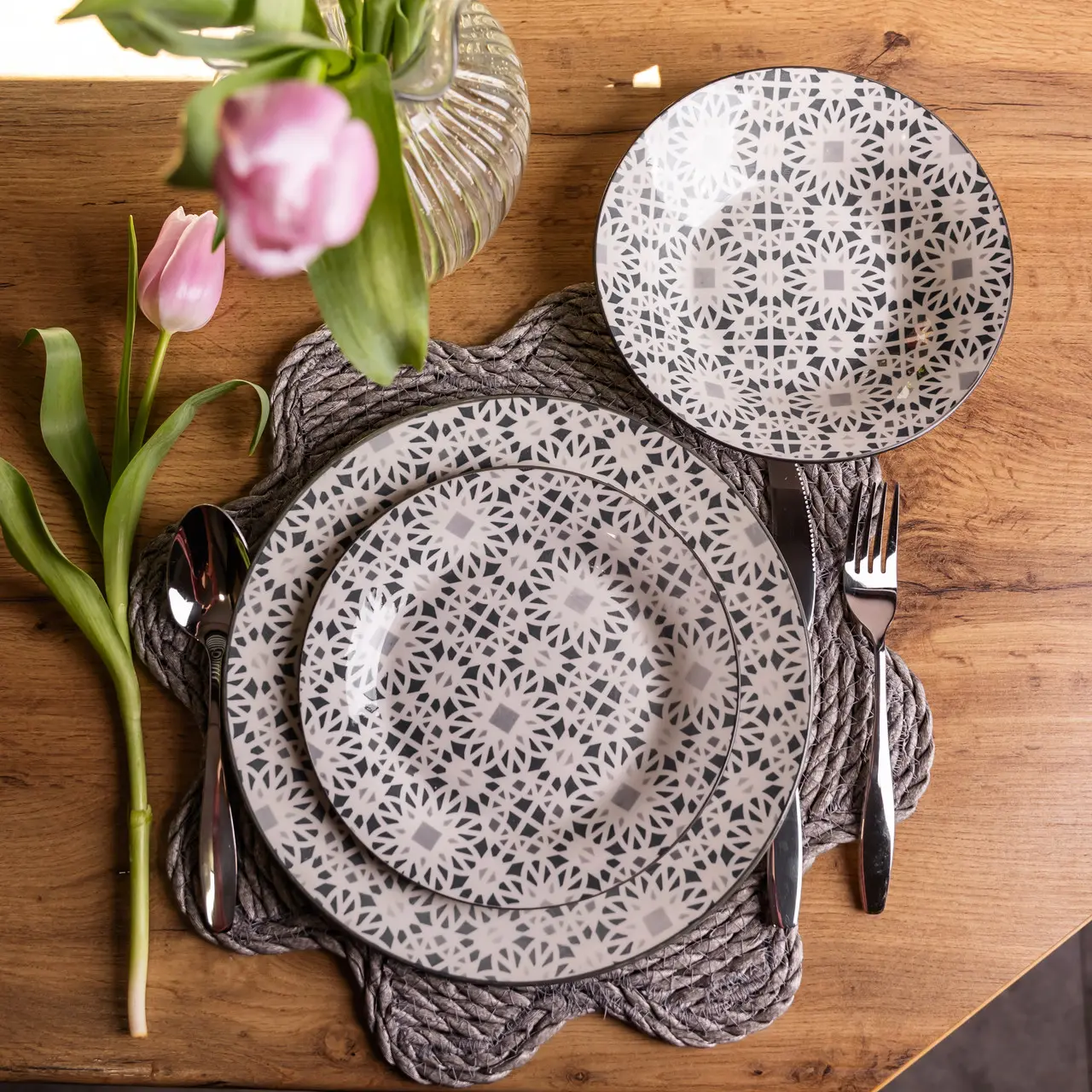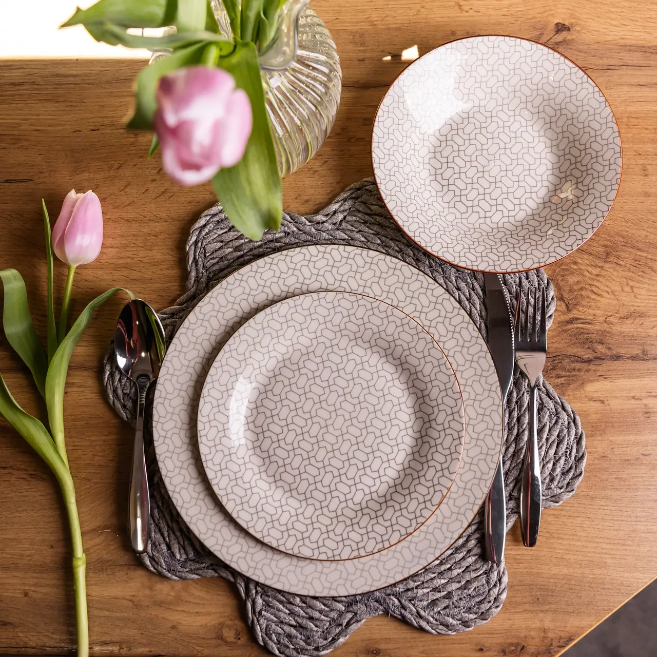 Столовий сервіз на 6 персон 18 предметів набір фарфорових тарілок для сервірування столу сервіз тарілок Yiwu HP-HK-A2