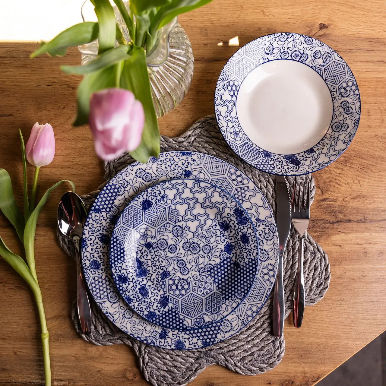 Столовий сервіз порцеляновий на 24 предмети на 6 персон Біло-Синій MD-24-3B Yiwu MD-24-3B