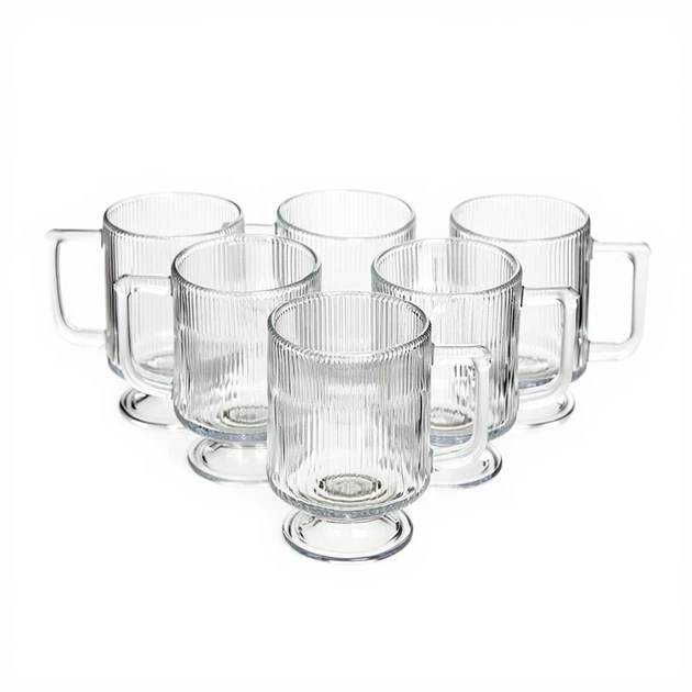 Набір скляних чашок 300 мл (6 шт) з рифленого скла HP-19-L7