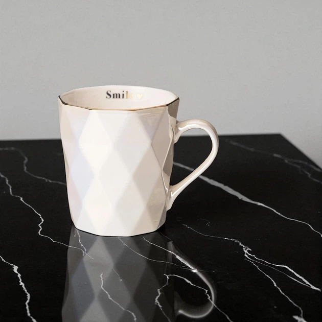 Кружка порцелянова із золотим обідком та золотим написом Smile 350 мл 33340