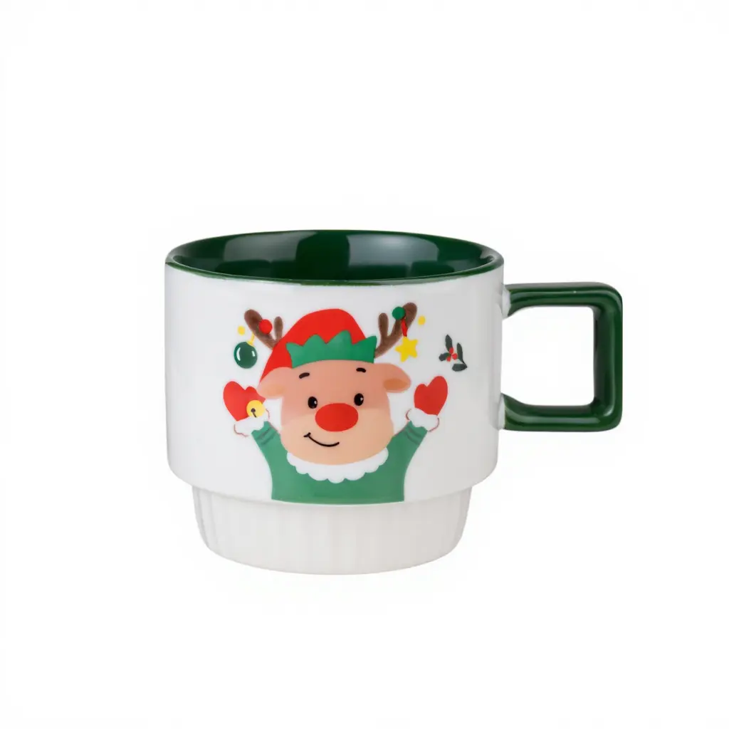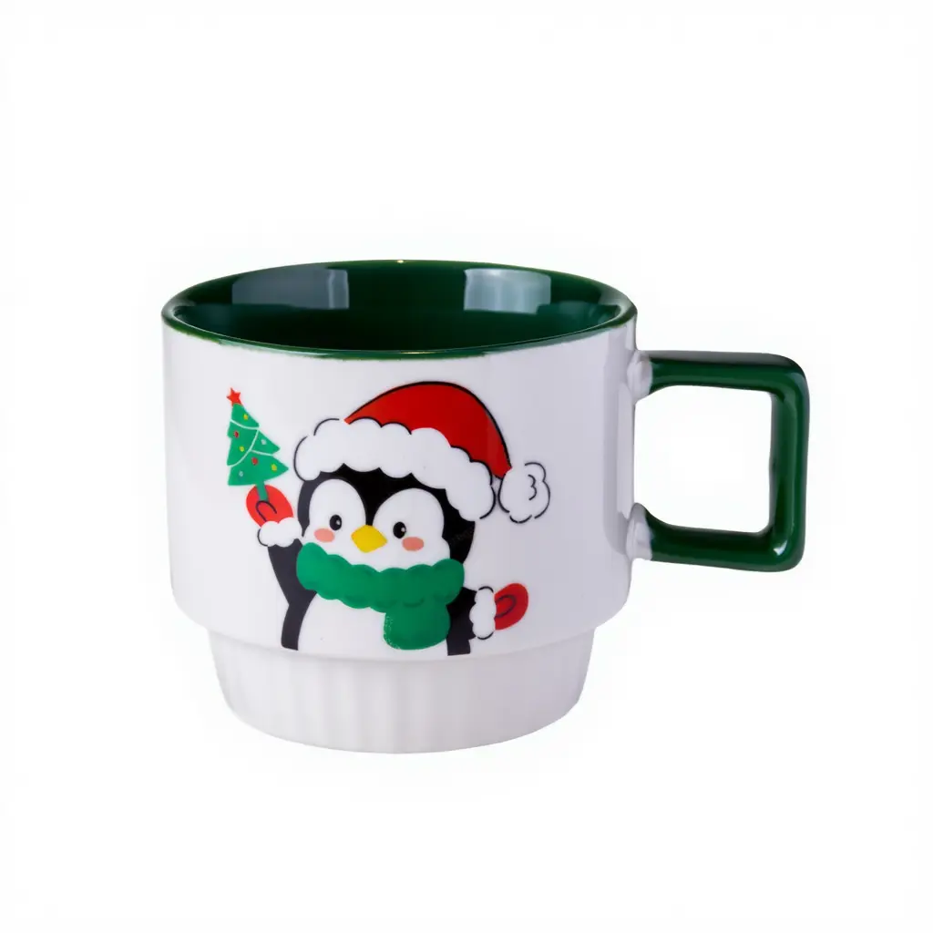 Новорічна порцелянова чашка для чаю та кави Пінгвін 400 мл Білий з зеленим Yiwu FM-CS-50P