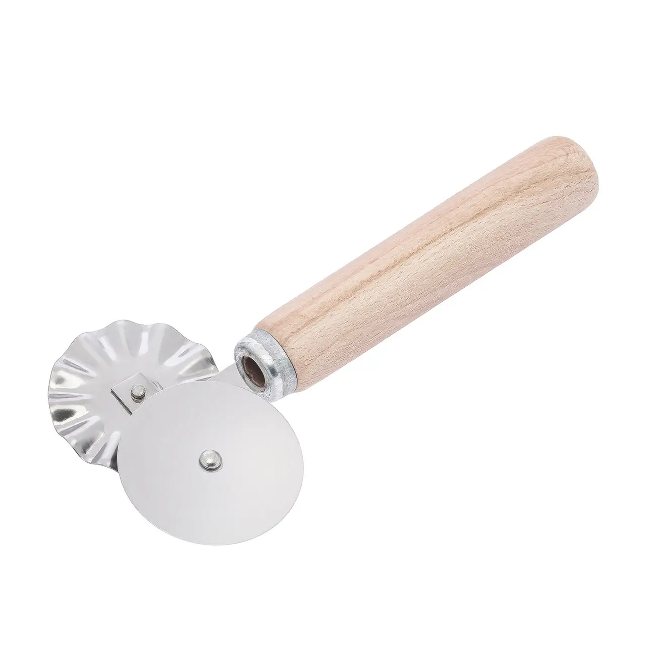 Багатофункціональний з'єднувальний ніж 2 в 1 для піци та тіста з роликом та дерев'яною ручкою 15.5 см, Kitchette 85667
