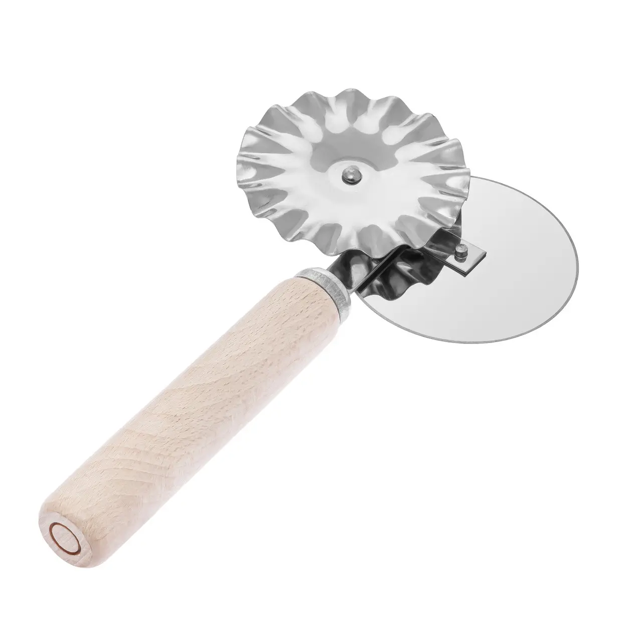 Ніж ролик фігурний зубчастий для тіста та вирізування чебуреків з дерев'яною ручкою Ø63х175 мм, Kitchette 85669