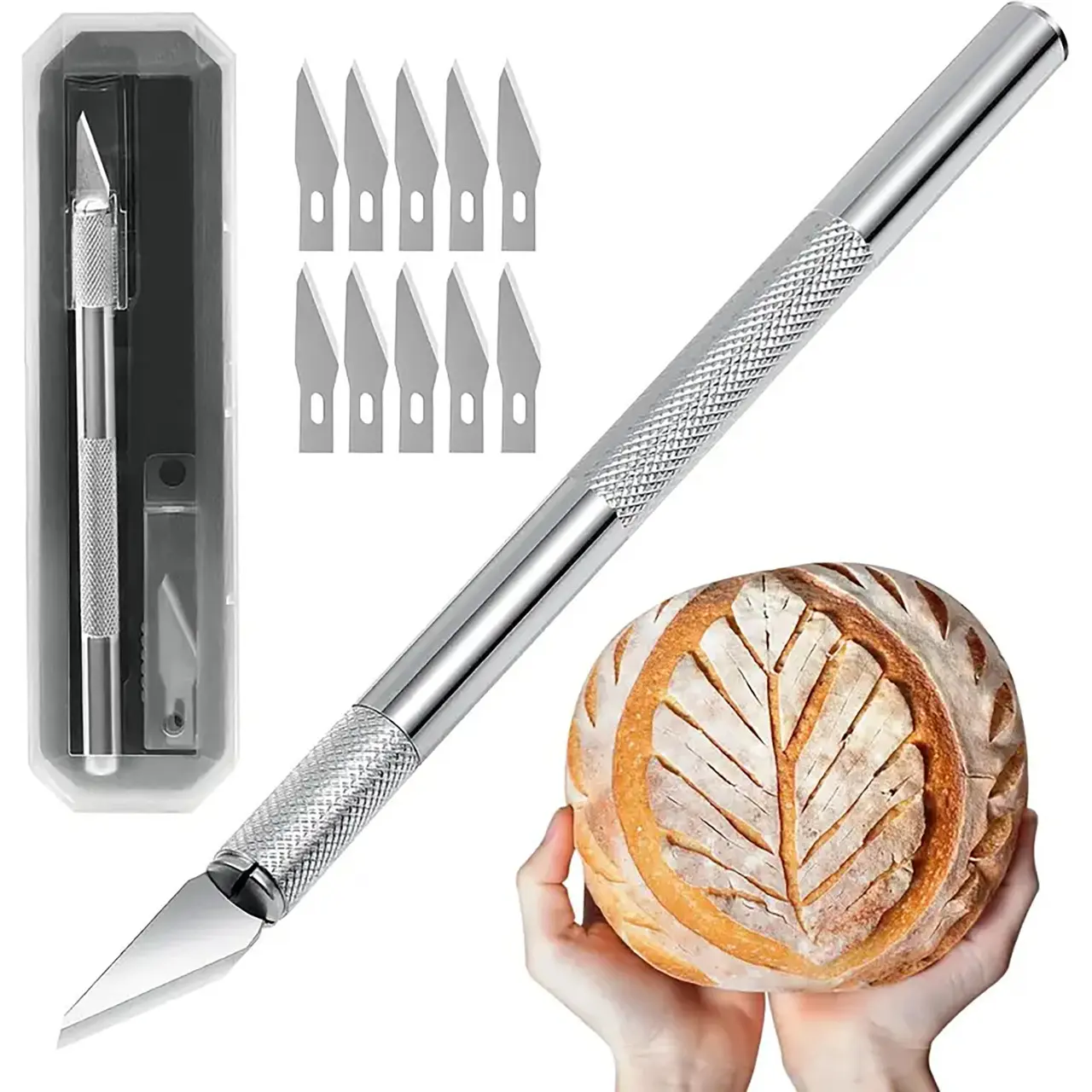 Пекарський ніж для художнього надрізування тіста для хліба, багету та здоби хліборіз з 10 змінними лезами у футлярі, Kitchen